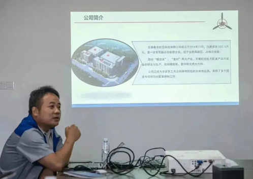 在交流座谈会中,赵昌霞从公司简介、螺旋桨研制能力、复合材料产品等方面向实践队员作了全面介绍,公司拥有完善的军工资质并先后承担了多个国家重大项目和重点型号的配套研制工作,队员们通过赵昌霞的介绍深切感受到了安徽羲禾航空科技有限公司在螺旋桨和复合材料领域做出的突出贡献,学习到了一定的螺旋桨设计有关知识,了解到了螺旋桨行业发展的相关情况。